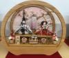 半円形ケースには家具で近年人気のタモ材を用いナチュラルな風合いを醸し出しています。 お人形のお顔もおぼこ風に可愛いく仕上がりました。